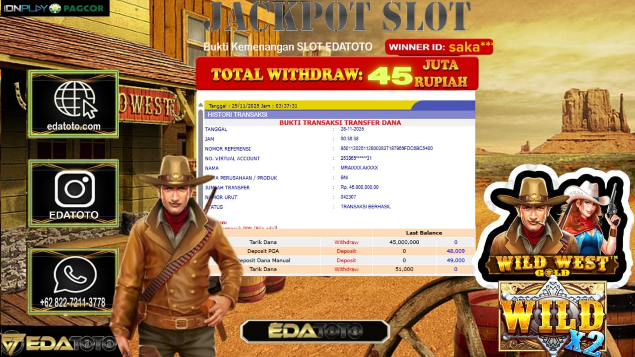 Selamat Kepada Pemilik user ID : SAKA*** Hari/Tanggal :Selasa / 28, November 2025 Jackpot : Rp. 48,00,000 JT Withdraw :45,000,000 . . .