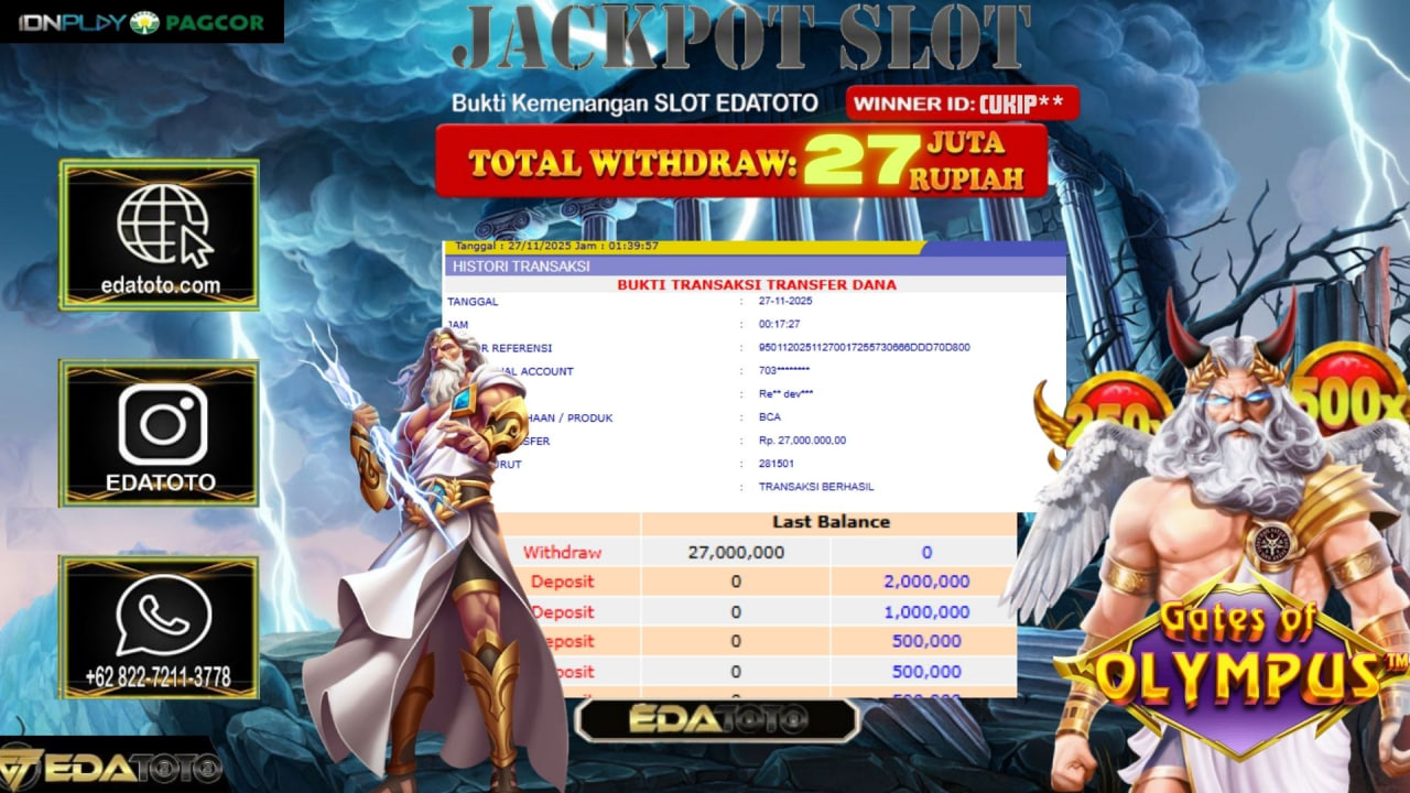 Selamat Kepada Pemilik user ID : ARD*** Hari/Tanggal :Selasa / 27, November 2025 Jackpot : Rp. 85,251,000 JT Withdraw :71,000,000 . . .