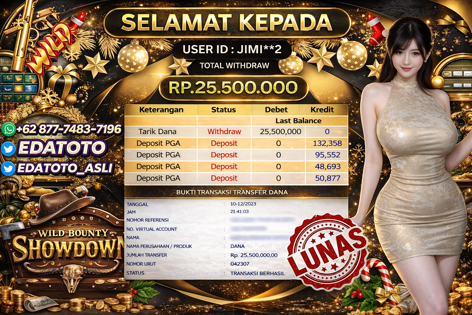 Selamat Kepada Pemilik user ID : JIMI**2 Hari/Tanggal :kamis/ 10, Januari 2026 Jackpot : Rp. 25,500,000 JT Withdraw : 25,500,000 . . .