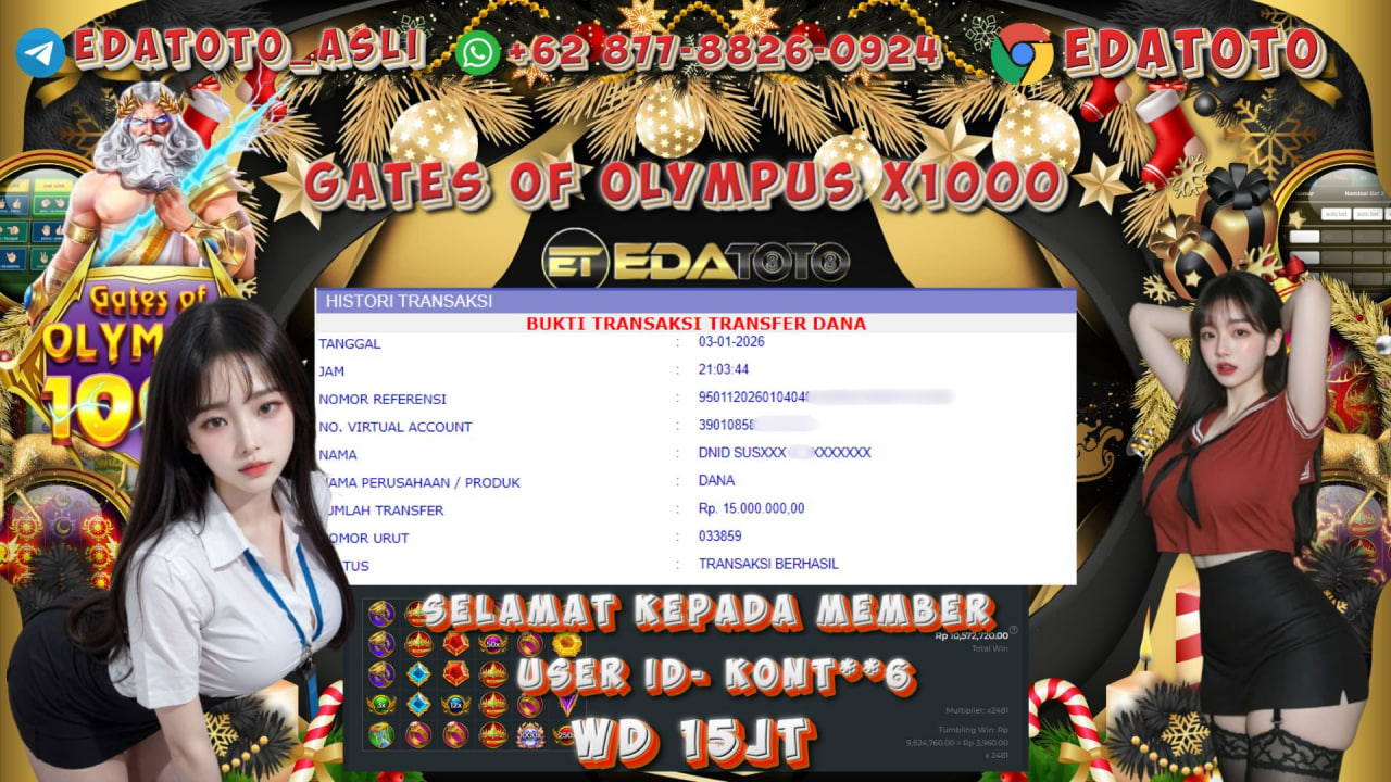 Selamat Kepada Pemilik user ID : KONT**6 Hari/Tanggal :kamis/ 3, Januari 2026 Jackpot : Rp. 15,000,000 JT Withdraw : 15,000,000 . . .