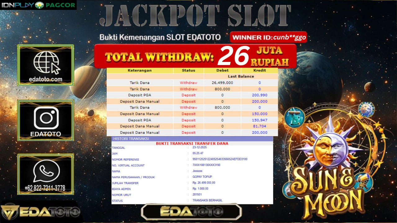 Selamat Kepada Pemilik user ID :PAS**** Hari/Tanggal :kamis/ 25, Desember 2025 Jackpot : Rp. 21,010,000 JT Withdraw : 21,010,000 JT . . .