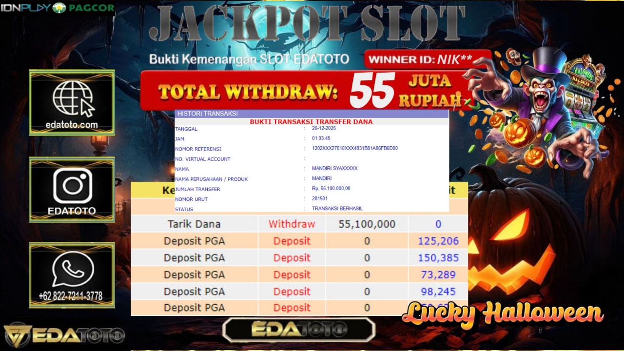 Selamat Kepada Pemilik user ID :NIK** Hari/Tanggal :kamis/ 26, Desember 2025 Jackpot : Rp. 55,100,000 JT Withdraw : 55,100,000 JT . . .