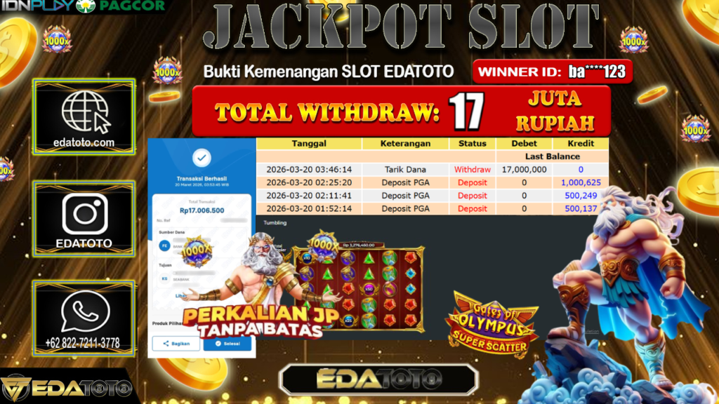 Selamat kepada member setia EDATOTO telah mendapatkan JP Bermain Di : Gates Of Olympus Super Scatter